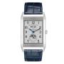 Quadrante: Quadrante argentato guilloché con lancette blu e indicatori delle ore in numeri arabi. Indicatori dei minuti attorno a un anello interno. Mese e giorno della settimana nell'apertura alle 12. Sub-quadrante data/fasi lunari nell'apertura alle 6.
