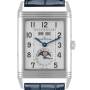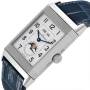Orologio Replica Uomo Jaeger LeCoultre Grande Reverso Acciaio 273.8.84 Q3758420. Movimento a carica manuale. Cassa rettangolare girevole in acciaio inossidabile 48,5 x 30,0 mm. Fondello espositivo trasparente in zaffiro. Logo Jaeger LeCoultre sulla corona. Lunetta scanalata in acciaio inossidabile. Vetro zaffiro resistente ai graffi. Quadrante argentato guilloché con lancette blu e indicatori delle ore in numeri arabi. Indicatori dei minuti attorno a un anello interno. Mese e giorno della settimana nell'apertura alle 12. Sub-quadrante data/fasi lunari nell'apertura alle 6. Cinturino in pelle blu con fibbia dispiegabile in acciaio inossidabile.