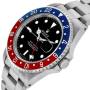 Ghiera: Ghiera GMT rotante bidirezionale con inserto speciale ghiera 24 ore blu e rosso Pepsi.